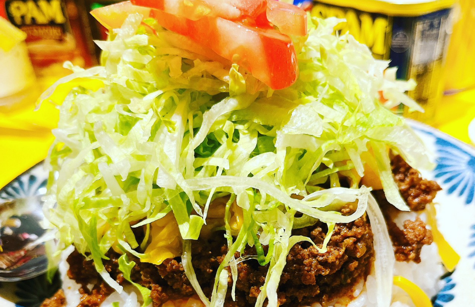 沖縄のB級グルメ!クラシックなタコライスは食べ始めたら止まらない!お得なXLはMの2倍です。