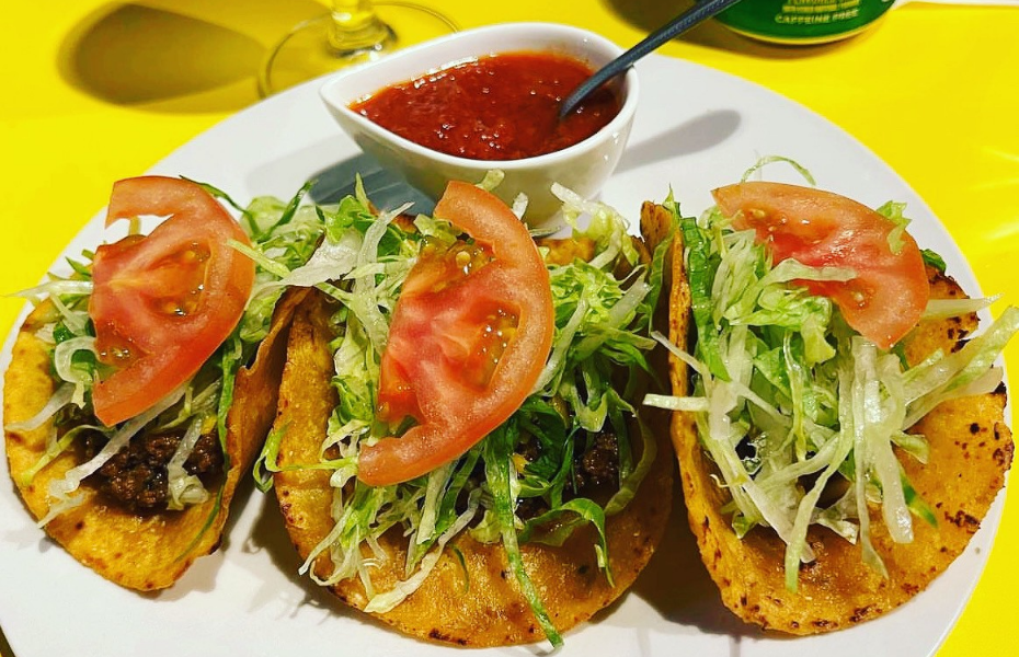 17種類のスパイス等を使用した牛100%ミートにチーズ、レタス、トマトを自家製タコシェルに乗せた沖縄タコスです!